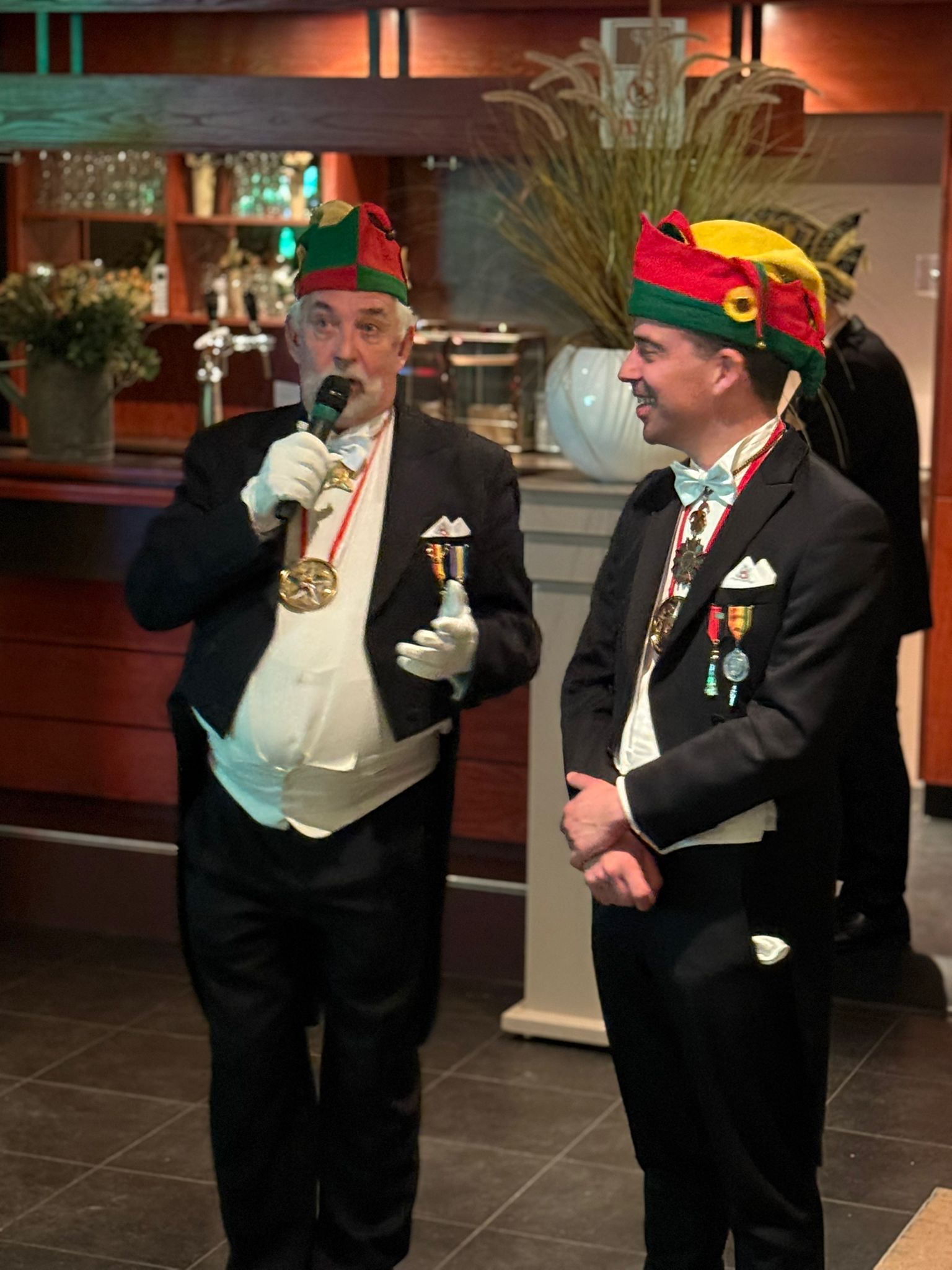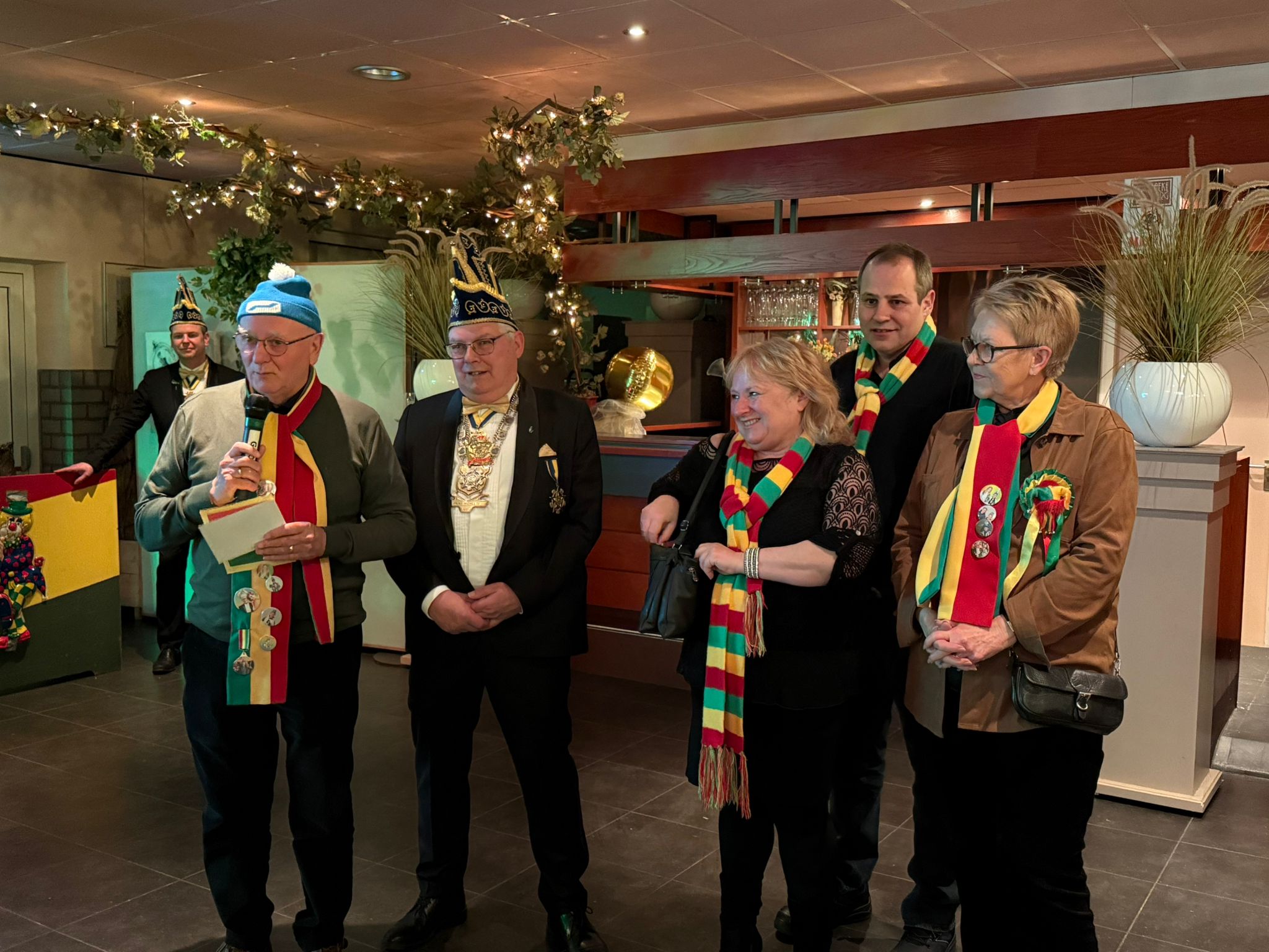Veer verwachte de bevrunde Carnavals vereinigingen en femilie en bekinde vaan t zjubeleij paar op dizze receptie. Netuurlijk zien alle vereiniginge oet de buurt en eederein dee hun n werrem hart tow draag welkom. Artieste zien Eric Cruts en Gerard Adriaens.
